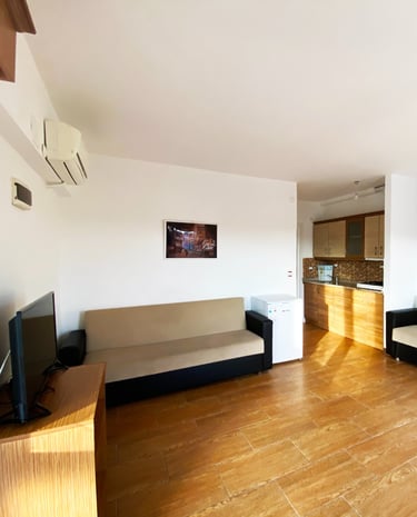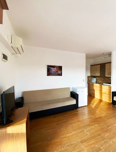 Bu oda tipimiz, tek odalı bir yaşam alanından oluşmakta olup, içerisinde modern mutfak ekipmanlarıyla donatılmış bir mutfak bölümü yer almaktadır. Oda içerisinde bir adet çift kişilik yatak ve bir adet açılabilir kanepe bulunmaktadır. Maksimum konaklama kapasitesi 3 kişidir.